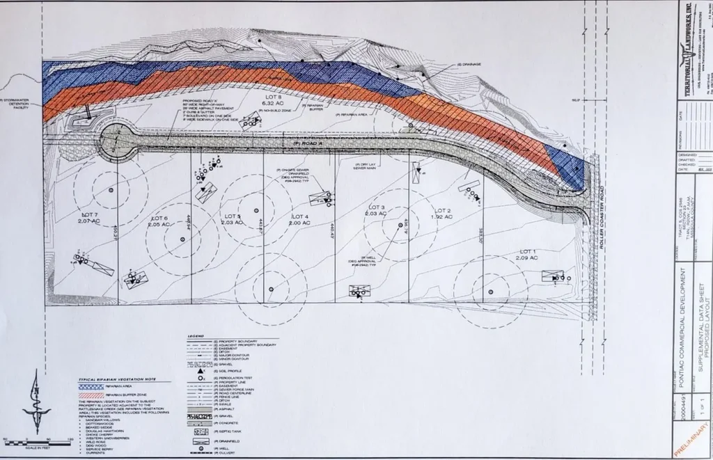 WORK IS COMMENCING ON THE PONTIAC SUBDIVISION!!! This is one of seven lots originally for sale in the Pontiac Subdivision. Lots 2, 3, 5 & 6 have sold Lot 7 is leased. Lot 4 is 2 acres in size. Approved by the county and the DEQ this 2 acre lot is 1.7 Miles from the Interstate and 2.5 miles from the airport. The subdivision is approved for commercial and light industrial use. The plans include a paved road (done), walking path (done) and berming (done) to protect area wild fowl. Fire Retention Ponds (done) and more. Full details for the finishing of the subdivision will be in the document section of the listing. Wells and septics are engineered but need to be installed by the purchaser. HOA as well as Covenants and Restrictions are written and are in Associated Documents. Buyers and/or their Agent are responsible for checking all property data including but not limited to square footage, zoning, covenants and anything pertinent to transaction.