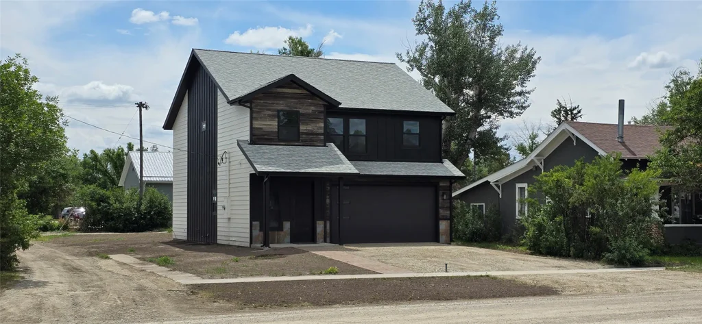 This beautifully crafted, newly constructed two-story home blends a touch of rustic charm with modern convenience and is fully move-in ready. Offering 1,905 sq ft of thoughtfully designed living space and a spacious 500 sq ft garage with an electric unit heater, this home is ideal as a primary residence, a peaceful retreat, or a vacation rental. Step inside through an impressive 8’ front door and immediately feel at home in the spacious open-concept living area. A cozy fireplace adds warmth and character, while the kitchen is a true showstopper—featuring a large island, sleek soft-close cabinetry, granite countertops, under-cabinet LED lighting, and stainless steel appliances. It’s a space designed for both everyday living and entertaining. Enjoy modern comforts like a natural gas furnace, electric water heater, Leviton smart electrical sub panel, and a whole-home Lutron smart lighting system plus LED lighting throughout, including subtle toe-kick accents in the kitchen and baths. The 3-bedroom, 2.5-bath layout includes full bathrooms with tiled showers and luxurious heated floors. A unique hallway light fixture, carefully restored from the original home once on this lot, adds a meaningful touch of history. Step outside to a large backyard and unwind under the covered back patio—perfect for outdoor dining or relaxing under the stars. The front exterior features beautiful 100-year-old reclaimed barn wood accent siding, giving the home an authentic and timeless Montana character. Located in the quiet and peaceful town of Valier, you're just a 3-minute walk to local amenities including grocery shopping, cafe& coffee shop, a hardware store, automotive services, salon/barber shop, library and a bank. Outdoor lovers will appreciate the proximity to boating and fishing at Lake Frances, hiking, and the secluded natural wonder of nearby Rock City with unique hoodoos! With Glacier National Park and the Rockies just an hour away, this location is truly the best of all worlds. All utilities provided including: city water and sewer, electricity, natural gas and high speed internet! Whether you're looking for your dream home, the perfect weekend getaway, or a smart vacation rental investment—this home checks all the boxes!