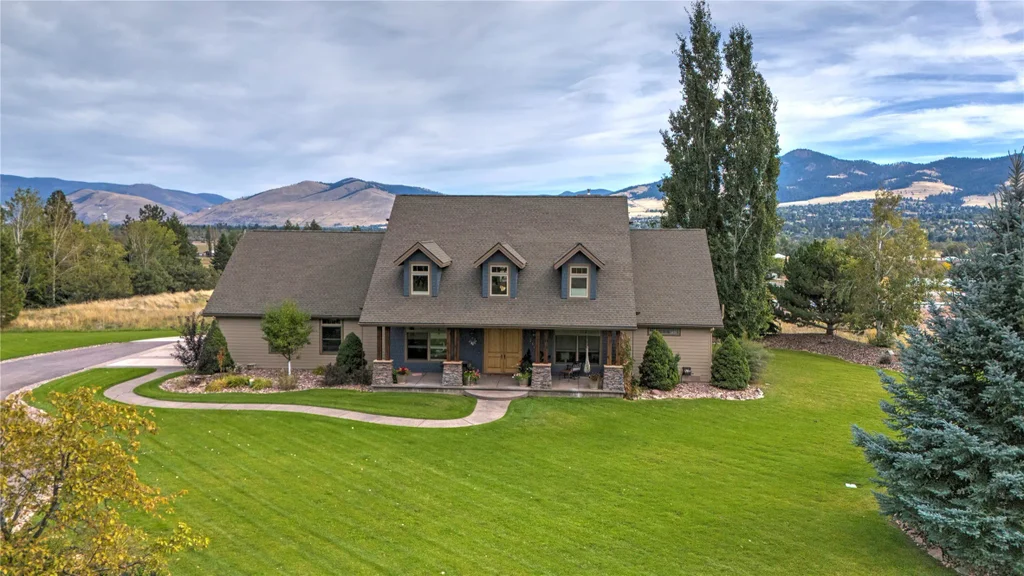This is the one you have been waiting for. Montana custom home with breathtaking panoramic views of Missoula and the surrounding mountain ranges: just one look and you will fall in love this beautiful 2-story luxury home that blends mountain charm with a modern flair. This spacious 5-bedroom, 5-bathroom home sits on over one acre, has an oversized 3-car garage, and over 3,900 (above ground) sq. ft. of spacious room to call home. This property was thoughtfully designed to maximize livability and provide an abundance of natural light––creating an inviting and comfortable living space, all while being surrounded by a relaxing, natural setting. Unique features are found throughout this home like rustic reclaimed timber wood accents, a great room with 20-foot ceilings, and gorgeous red birch hardwood floors. Main floor has a Master Suite and a large office. Theatre/Game room located upstairs. A gas fireplace in the main level great room area keeps the home cozy during long Montana winters and an abundance of large windows keep the living space, dining area and kitchen flooded with natural light. Extremely close to the Blue Mountain recreation area. Located just minutes from the town of Missoula, The Peak health and tennis facility, and incredible trout fishing in the Bitterroot River. This gorgeous home for sale is a rare opportunity schedule a private showing today!
