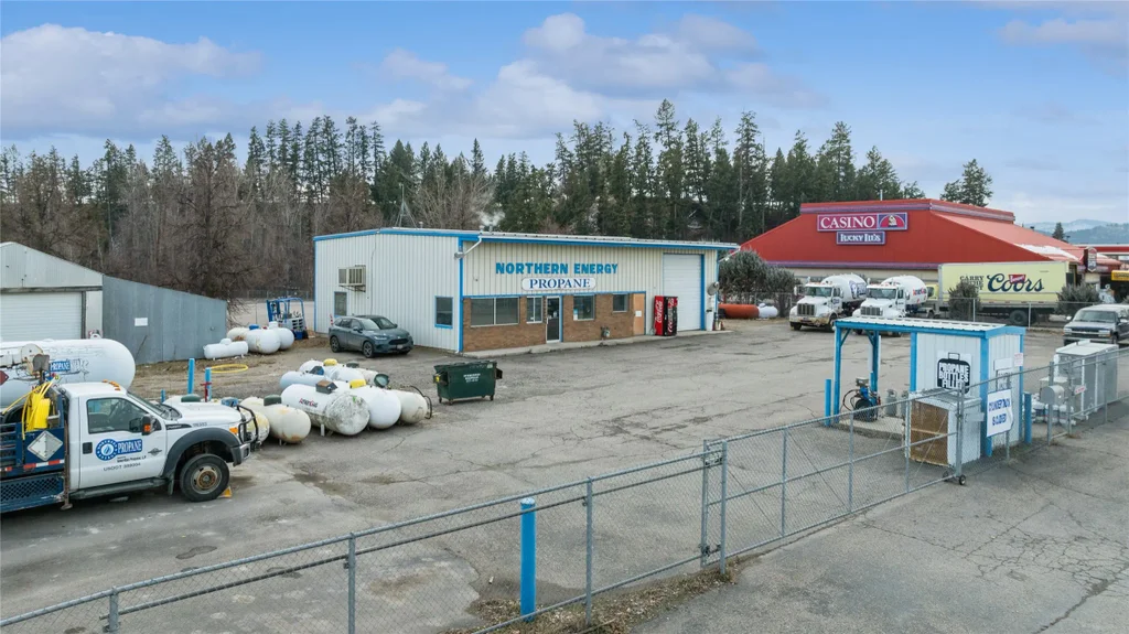 Great visible location on busy Hwy 2 East in Evergreen, next to the old Walmart (U-Haul). Approximately 2,400 sqft building with an additional 1,120 sqft upstairs storage space that sits on .7 acre with B-2 Evergreen Enterprise Overlay Zoning (see documents). Includes overhead door, showroom, office spaces, 2 bathrooms, kitchen and storage loft. Includes 504 sqft utility building with overhead door with additional 384 sqft attached. Property is paved and fenced. Amerigas has leased the property with a new 5 year Triple Net lease starting January 2025.