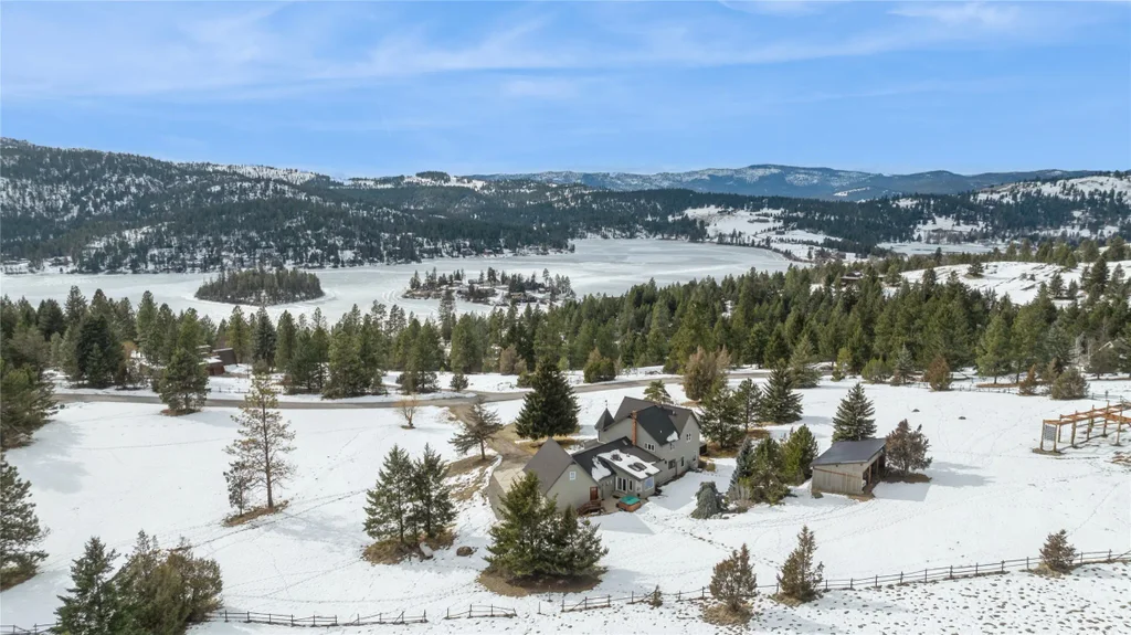 BE IN BEFORE THE HOLIDAYS! Imagine holidays in your new Montana lake view 5-acre estate! Make memories in this epic fall-winter home overlooking Foy's Lake and the mountains. This home blends modern amenities with peaceful privacy yet not too secluded! Just minutes from shopping, Logan Health and the bypass. Peace of mind is here with a new warrantied roof, new furnace, new paint and updates throughout plus a new chef’s dream kitchen with high-end Monogram appliances. The main floor also has new engineered hardwoods, a formal dining room and living room with a double-sided fireplace. The vaulted family room offers a full coffee/wine bar with built-in espresso machine, walk-out sliders, and a cozy wood-burning stove. A glass barn door slider into the office finishes off the main floor. The newly finished entertaining basement includes a 85” tv, kitchenette, bar, a large guest bedroom and new glass-shower bath. Upstairs you will find a spacious master ensuite with two more bedrooms and 2nd full bath. The heated & finished extra-deep garage with vaulted workshop offers cabinets throughout plus a 3-stall new pole barn. This home combines luxury, functionality, and natural beauty in one exceptional rare package. A separate entrance Airbnb-ready studio apartment with its own hot tub and a proven 9-year income history adds to the investment potential. Outside you’ll find a new 11-person swim spa, a rock sunset patio with fire pit and an 80' Ninja obstacle course for the kids. With private HOA tennis courts and equestrian trails plus nearby Lone Pine State Park, Herron Park and the new Foys to Blacktail trail, this estate offers everything you need for a vibrant lifestyle. Don't miss the chance to own this rare property! FURNISHED PACKAGE OPTION AVAILABLE FOR TURN KEY LIVING.