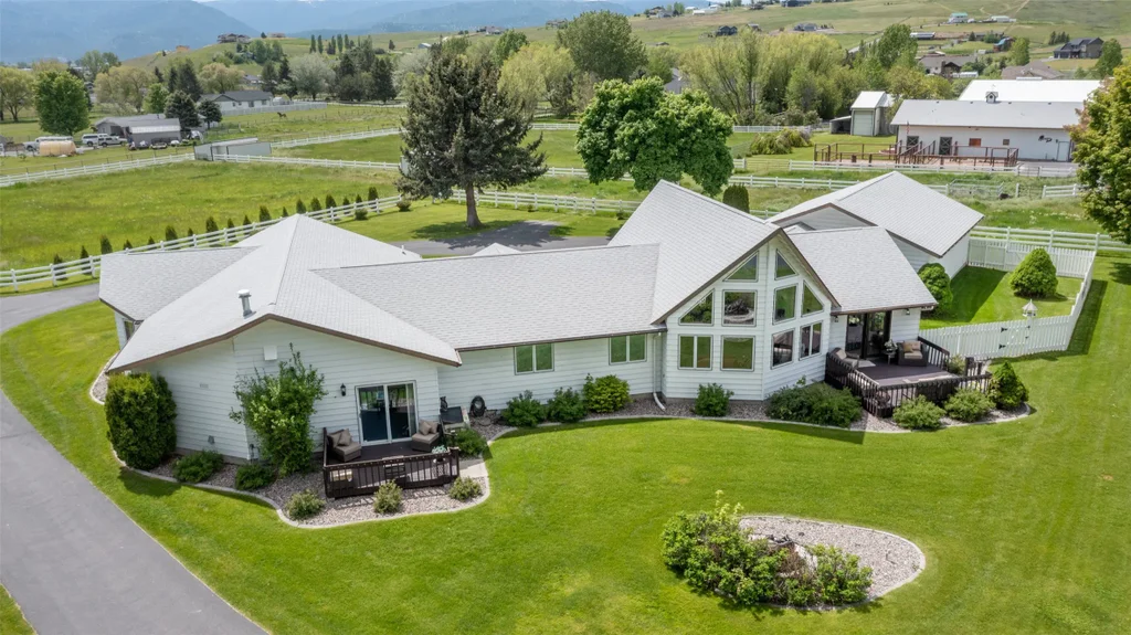 Unbelievable Horse property only 15 minutes to Missoula. Located at the end of a paved driveway behind an electric gate sits this beautiful 8.8 acre fully irrigated , manicured, nicely landscaped property. 92 x 120 riding arena with office, tack room, 6 stalls, wash area and direct horse door to the arena. 10 outbuildings with a 12 X 36 RV and hay storage building. Home is 2241 Square feet with a large indoor pool area with bar and exercise area with its own dehumidifying air system. Kitchen has been remodeled with granite counter tops and stainless steel appliances. Extensive fencing with at least 20 gates for moving animals with 6 different pastures. Owner had at one time 13 horses. There is a large lighted outdoor arena. Two wells with two automatic wind up sprinklers. Two heated 3 car garages with one attached and another separate building. The property is a must see to believe.