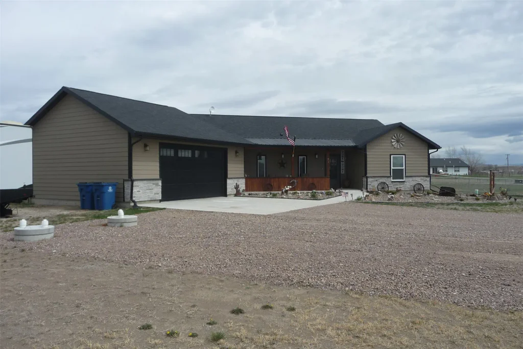 This home is ONLY 10 min from Great Falls and a great find for the whole family to enjoy. With an open floor plan, and a gas fireplace for those cold winter nights, this 3 bedrooms 2 bath house with main floor laundry, and Hot Water on Demand, is sure to suit any family. An open kitchen that hosts beautiful granite countertops. A 2+ car garage and a fenced yard On 2.11 acres. it features 2 1500 gallon Cisterns and Yearly dues include irrigation water for your yard.