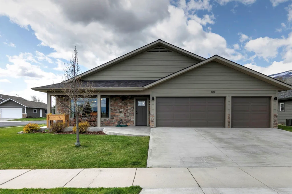 Welcome to 1109 Heritage Drive in Kootenai Creek Village, a premier 55+ community! This beautifully built 1,832 sq ft home, constructed in 2019, sits on a spacious 0.369-acre corner lot. Featuring 2 bedrooms and 1¾ bathrooms, the open-concept design includes wide hallways and doors, with a main bathroom boasting a handicap-accessible shower for added convenience. Enjoy stunning northeast views of the Sapphire Mountain Range from the large living room window. The property includes a large 3-car garage, central heat and air conditioning, and is located across from a lovely park. The gated community offers tranquil walking paths lined with Ponderosa trees and benches for relaxation. Living in Stevensville provides a quaint small-town atmosphere with easy access to shopping and dining, while the Missoula Airport is just a short drive away. Experience a vibrant lifestyle in this welcoming community! Schedule your showing today!