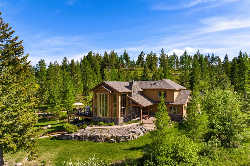 Stunning top-of-the-mountain privacy and panoramas in nearly every direction including spectacular views to the north across the Flathead Valley to Glacier National Park. State of the art home with radiant floor heat, bathrooms have all been updated, new flooring in the walkout basement, and brand new roof in May 2025. Great room with oversized windows to maximize the views. Sit on the deck and enjoy the sound of the waterfall into the pond. Wildlife abounds in this private 20 acre setting, new perimeter road has been cut in for walking or four-wheeling.