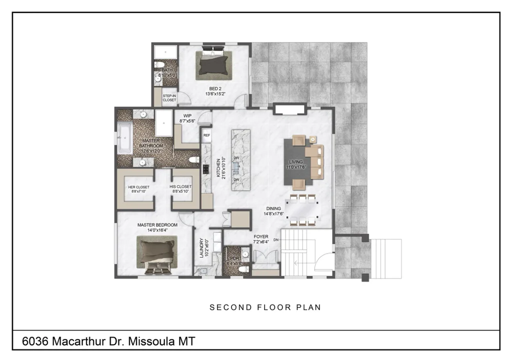 Welcome to 6036 MacArthur in the sought-after West Pointe Subdivision, where luxury meets functionality in a beautifully redesigned home. This spacious property includes a four-bedroom main residence and a private one-bedroom mother-in-law suite with its own garage, ideal for multigenerational living or potential rental income. The home offers stunning panoramic views of the Missoula Valley, with open-concept living areas, a gourmet kitchen featuring a butler's pantry, heated tile floors, custom closets, and a spa-like primary suite with a soaking tub and walk-in shower. The association takes care of snow removal and lawn maintenance, allowing more time to enjoy the outdoor lifestyle, with new parks and trail systems. Located just 10 minutes from downtown Missoula, this home provides the perfect balance of luxury, convenience, and recreational opportunities. Don’t miss the chance to see this exceptional property—schedule your private tour today!