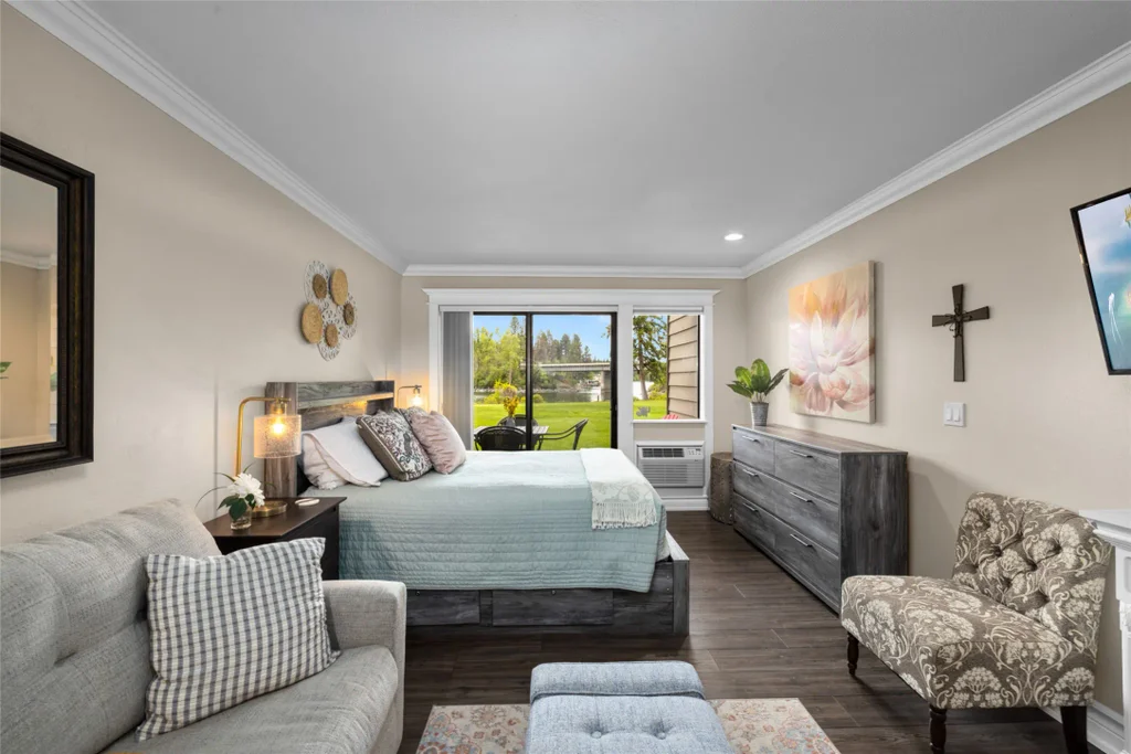 Lakefront studio condo, fully remodeled and offered furnished. Wake up to serene lake views in this beautifully remodeled ground floor studio condo, perfectly positioned right on the water of Bigfork Bay on Flathead Lake. Step out onto your private patio that opens directly onto the large lawn area, ideal for morning coffee or sunset relaxation. Inside, no detail has been overlooked. This unit features a brand-new kitchen with updated appliances, updated flooring, and a thoughtfully designed layout that maximizes both space and comfort. Whether you're looking for a weekend getaway, a full-time retreat, or a hassle-free investment, this lakefront gem is ready for you.