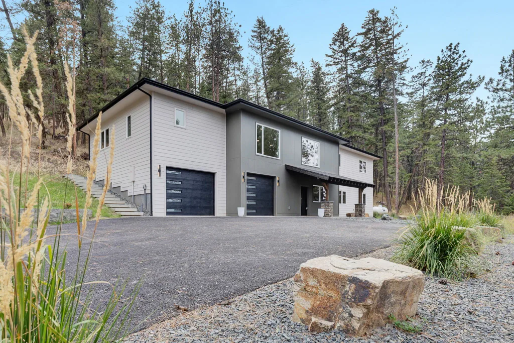 -Seller offering $10,000 seller concessions for additional Landscaping- Located in the highly desirable Big Flat area. this custom-built home by Jax Builders blends luxury, thoughtful design, and natural beauty on 5 stunning acres. 15 minutes from Missoula International Airport and minutes from the Clark Fork River and nearby recreation, it offers the best of Montana living. Well-maintained landscaping and cantilevered concrete steps create a striking entrance. Inside, the lower level features a welcoming entry nook and a versatile entertainment room complete with a dry bar, mini-fridge, granite countertops, and floating shelves, perfect for hosting or relaxing. Upstairs, expansive picture windows showcase panoramic views of Missoula. The open-concept living area centers around a stone-surround electric fireplace, flowing to a chef-ready kitchen with an 11-foot island, custom cabinetry, granite and quartz countertops, a ZLine gas range, pull-out microwave, and a large walk-in pantry. The adjacent dining area is filled with natural light. The upper-level primary suite offers a peaceful retreat with a spacious walk-in closet and spa-like en-suite featuring a soaking tub, oversized shower, double vanity, and two windows for added light. Another large bedroom with a full bath is perfect for guests or a home office. A well-appointed laundry room with cabinetry and workspace adds function, while downstairs, two additional bedrooms share a full bath, with ample storage throughout—including a dry storage room and utility closet. The two-car garage features frosted glass doors and trench drains that efficiently manage snow and ice melt beneath your vehicles for year-round convenience. A cistern will also be installed to support water storage needs and enhance long-term property sustainability.