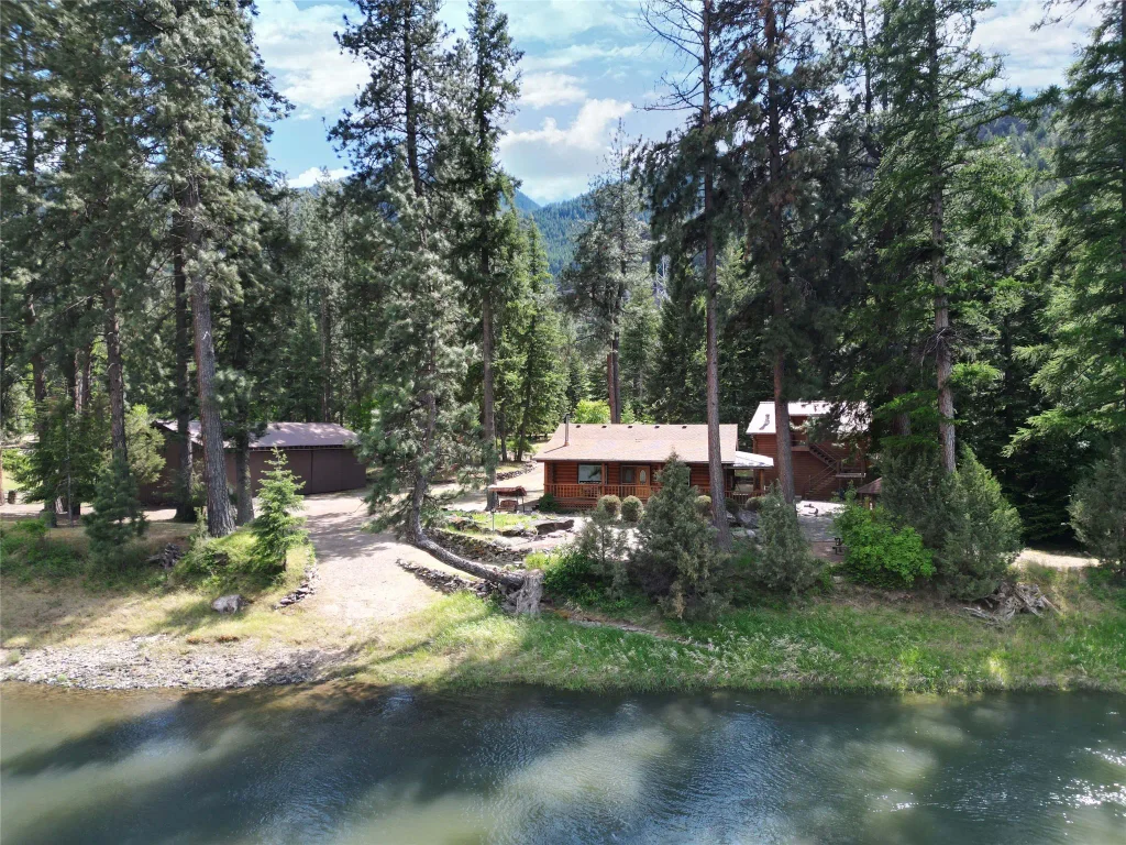 Log Home nestled on the banks of the beautiful Clark Fork River with 375 +/- feet of Frontage with launching area. Stunning river and Mountain views 3.82 parklike treed acres with hand stacked stonewalls and planters throughout the landscaping. The open concept living space has vaulted tongue and groove Cedar ceilings and walls, spacious kitchen with Stainless appliances, a wood stove with rock hearth and mantel. The outdoor amenities include a 24x30 garage /shop and 720 sq. ft. dry Guest Quarters above. 5 stall 60x24 pole barn with sliding doors, fenced garden area with extra covered storage. 10x24 covered carport or woodshed. Grounds include Stone patios off the covered porch and a lovely Gazebo to sit and enjoy the peaceful river and wonderful sunsets and sunrises! The roof and carpet were just replaced. Wonderful river retreat! This is a one-of-a-kind property