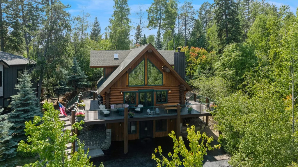Here is is - your quintessential Montana log home tucked into the trees, just minutes from downtown Whitefish. Zoned WRR-1 for short-term rental potential, this 4-bedroom, 3-bath retreat offers the perfect blend of privacy and proximity. Take in sweeping views of the Whitefish Mountain Range from the expansive wrap-around deck, or relax in the secluded backyard featuring a hot tub, fire pit, and patio. Inside, vaulted ceilings and oversized windows fill the main level with natural light and frame the mountain views. The lofted primary suite is a true sanctuary, complete with a private balcony and sitting area. The recently converted lower level adds flexibility with a spacious family room, two bedrooms and a half bath. Enjoy four-season recreation with downtown Whitefish just 4 minutes away, Whitefish Mountain Resort 10 minutes up the road, and crystal-clear Whitefish Lake within 5 minutes. Rental projections available upon request.