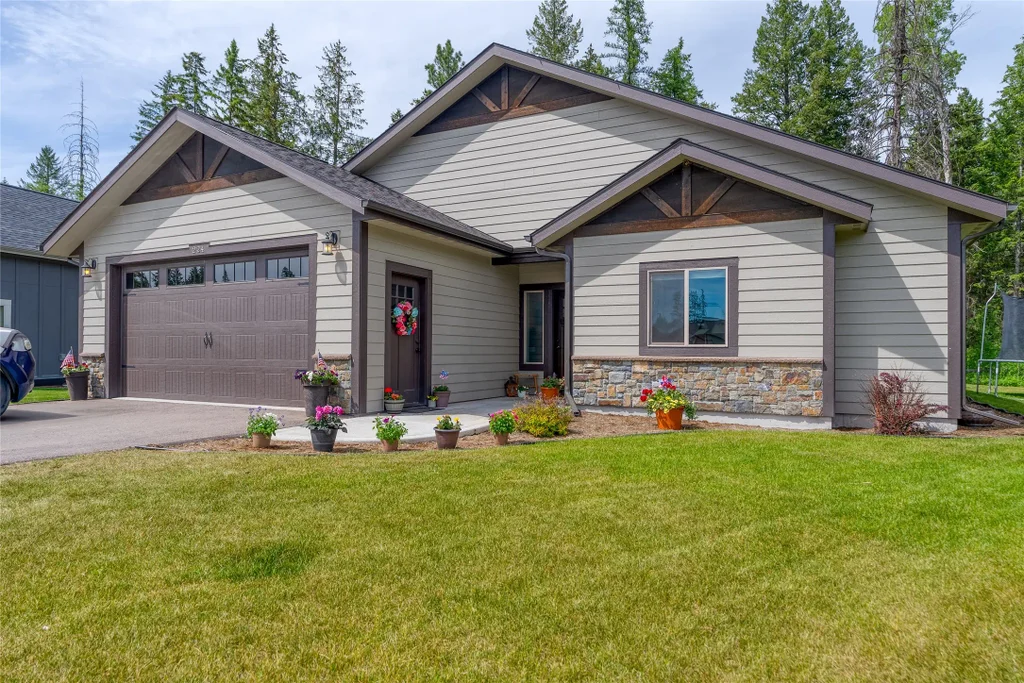 This beautiful open concept home sits at the end of a private cul-de-sac in the sought after Glacier Ranch Subdivision on a .24 acre landscaped lot. Built in 2020, this 3 bed 2 bath home is a high-end build with marble and granite countertops, circle sawn-cut fir floors, and beautiful knotty alder cabinets. The large primary suite has a jetted tub and a walk-in tile shower as well as a walk-in closet. The two remaining bedrooms are located on the other side of the home offering privacy for guests. Relax by the gas rock fireplace in the mornings or sit outside under the covered patio. Centrally located with easy access to main artery roads and Glacier International Airport.