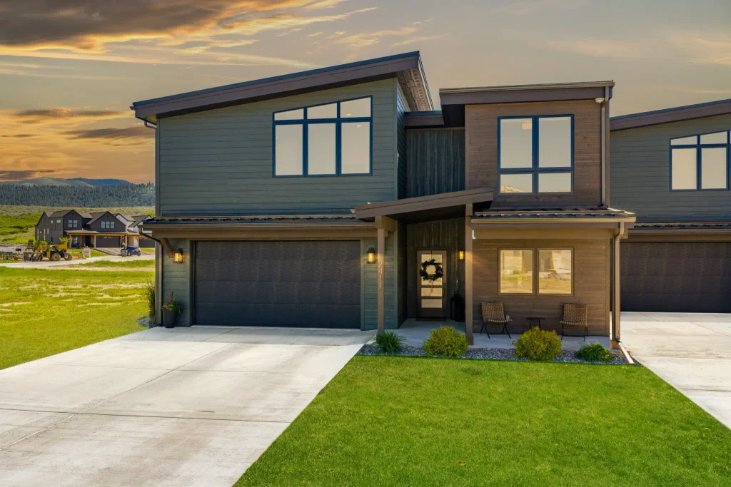 Experience an unparalleled combination of comfort, luxury, and nature in this stunning modern townhome, perfectly located within Missoula's sought-after Freestone Development. Meticulously crafted by Hoyt Construction, this 4-bedroom, 3.5-bathroom residence features a thoughtfully designed open floor plan that is flooded with natural light from the oversized windows. Every inch of this home exudes custom elegance. As you enter, you'll find a bright and airy interior adorned with high-end finishes. The home showcases luxury engineered flooring, plush carpeting, intricate tilework, warm brass lighting fixtures, stone countertops, and breathtaking exterior views that rival the beauty of the interiors. The gourmet kitchen dazzles with nearly new stainless steel appliances, quartz countertops, a sleek modern tile backsplash, a breakfast bar, and stylish pendant lighting that illuminates the island. The kitchen and dining nook offer a seamless flow for your culinary creations and dining experiences. Just off the kitchen, the living room features a contemporary tiled gas fireplace, soaring ceilings, and generous sliding glass doors that open to tranquil views. The main level also includes one of the two primary bedrooms with an ensuite bathroom and a walk-in closet. Completing this level, you'll find a convenient half bathroom for guests and a laundry/mudroom leading to a zero-entry double-car garage, enhancing the home's effortless accessibility. The luxury continues upstairs with a modern cable rail staircase leading to the second level. Here, you can indulge in three bedrooms, including a primary suite with an ensuite bathroom that boasts a stunning tiled shower, a soaking tub, and a walk-in closet. A guest room with tall windows offering expansive views, and a third spacious bedroom or bonus room above the garage. Additional space is provided on an open, sunlit landing, perfect for a reading nook, den, or study. Splendor continues outside your door, where you'll find 35 acres of shared common areas, fostering a sense of space and tranquility surrounding each home. Enjoy exclusive community access to vast grounds along the Clark Fork River, complete with dedicated walking trails that offer a blissful connection to nature and spectacular vistas. This isn't just a home; it's an invitation to experience the best of Missoula, Montana, where outdoor adventure meets refined living.