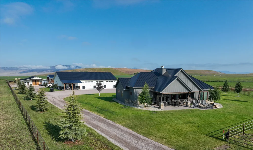 This 40-acre Montana estate offers luxury living in every detail with stunning Mission Mountain views. Ideal for horses or farming, the property includes 35 irrigated acres of alfalfa, a 40x80 heated shop with an 800 sq ft apartment, a 60x44 horse barn (two stalls) with heated tack room, a 50x50 hayshed, and a deluxe chicken coop. The 2,969 sq ft home boasts a spacious open floor plan, including a gourmet kitchen, office with built-in cabinetry, and a master suite with his-and-her closets. The outdoor space features a gas fireplace, custom grill, flat screen tv and fire pit. Top amenities include central A/C, propane heat, two water heaters, and underground sprinklers. With 400 amp power service, community water, and solar-powered gates, this property blends luxury and functionality in a serene location. This property could be split into two 20 acre parcels.