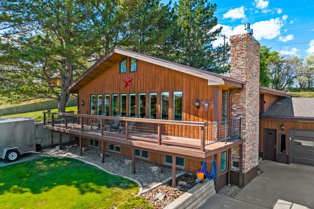 Imagine waking up to breathtaking city, river, and mountain views every day in this remarkable 4-bedroom, 2.5-bathroom home in the Riverview Terrace Addition with RV Parking. Designed for comfort and entertaining, it features an open concept layout, soaring cathedral ceilings, and a gourmet kitchen with double ovens, and a gas cooktop. Enjoy your mornings or evenings sipping your favorite beverage on the wrap around deck just off the dining area, or sitting around one of the two gas fireplaces that offer warmth and ambiance. The expansive basement family room has a wet bar and is perfect for hosting gatherings. Many recent updates have been made to this home in 2024 to include: New Roof, New AC, Dishwasher, Hot Water Heater, Washer & Dryer, Custom Pavers and drainage upgrade in the back yard, New Pergola, and Exterior of the Home has been Painted.