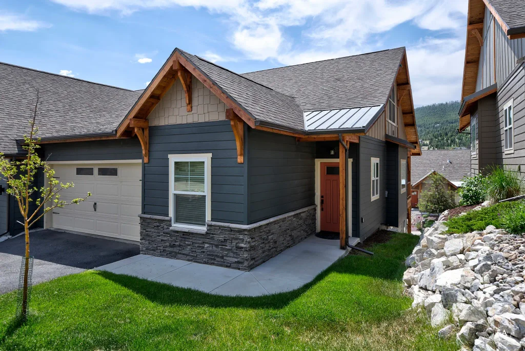 Immaculate condo with sweeping mountain views, main-level living, just 3 minutes from the hospital, and quick access to hiking and biking trails. Set in a quiet, well-kept neighborhood, this home offers natural beauty, comfort, and convenience. With zero-step entry from both the front door and attached garage, this low-maintenance property features hardwood floors, granite countertops, custom cabinets, gas range, large pantry, and timber accents. The open layout includes 2 bedrooms and 2 full baths on the main level, plus a covered deck—accessible from both the living room and primary suite—perfect for morning coffee or evening sunsets. The walk-out lower level adds 2 more bedrooms, a full bath, and a spacious family room that opens to a covered patio, ideal for guests or extra living space. Whether you're seeking simplicity or a second home, this condo is perfect for those who value community, convenience, and an active Montana lifestyle.