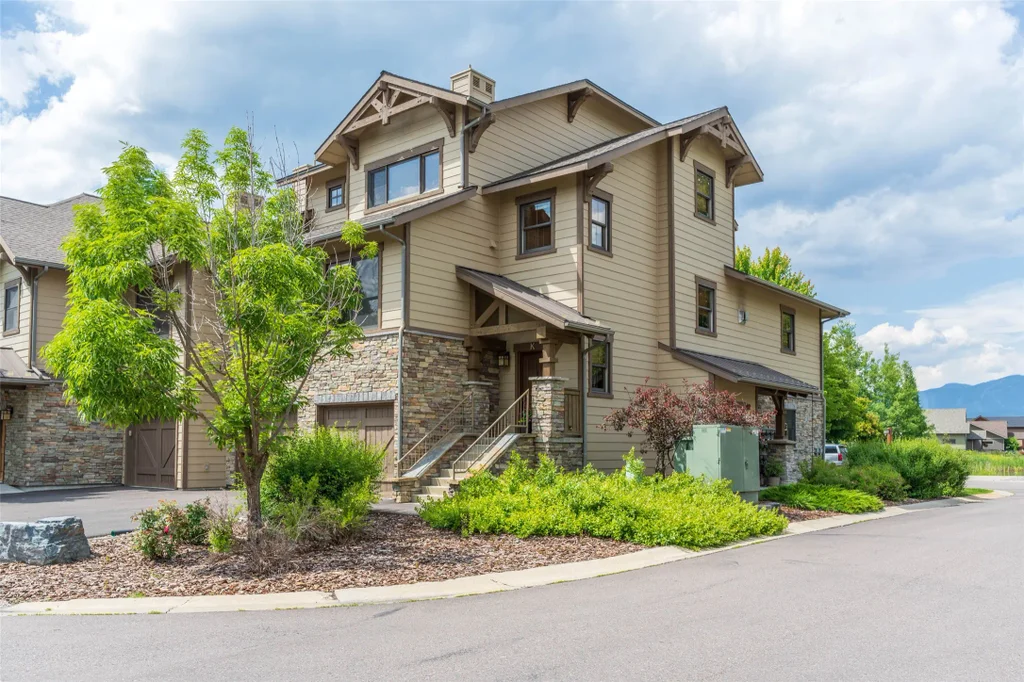 Enjoy effortless Montana living in this beautifully maintained and lightly lived in 3 bedroom, 2 bath end unit condo in the sought after Monterra community. The main level welcomes you with an open layout that flows easily from living to kitchen and dining spaces. A large granite island anchors the kitchen, complete with a gas stove and stainless steel appliances. Nine foot ceilings and expansive north facing windows bring in natural light and frame mountain views. Two bedrooms with walk in closets, a full bath, and laundry room complete the main floor. Upstairs, a generous flex space includes a dedicated office area. The private primary suite offers a walk in shower, double sink vanity, and spacious walk in closet. Outside, the covered deck invites you to relax and soak up the views. Located in the heart of Whitefish, this condo offers easy access to Glacier National Park, Whitefish Lake, ski slopes at Whitefish Mountain Resort, and the vibrant downtown scene.