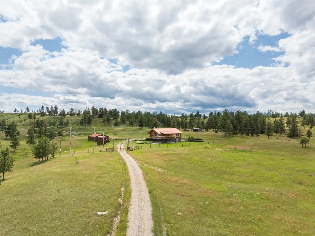 This exquisitely remodeled log home, nestled in the scenic Bull Mountains, sits on 240 acres of rolling hills and views. The main floor features expansive windows and vaulted pine ceilings, creating a bright, inviting space ideal for baking, entertaining, or relaxing. Around the corner are two generously sized bedrooms and a beautifully updated full bathroom. Downstairs offers another spacious bedroom and bath for guests, along with a large bonus room featuring a cozy wood stove—ready for your personal touch. Step out onto the oversized deck to take in the panoramic views and frequent visits from wildlife. In addition to two wells, the property includes an outbuilding, a 24x40 detached shop, and a secure bunker/bin—ideal for storage or creative use. With endless hunting opportunities and room for cattle or horses, this Montana gem is ready to welcome you home. Info deemed reliable but not guaranteed. Buyer/buyer agent to verify.
