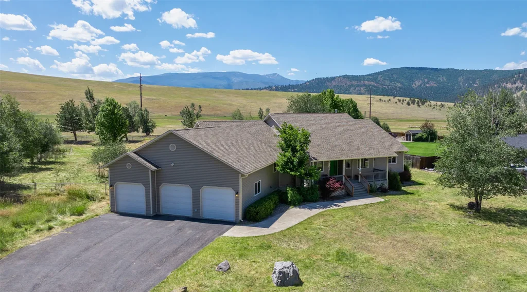 Situated on 1.49 acres in the Maloney Ranch Subdivision, this thoughtfully designed 4br, 4ba home offers over 4,400sqft of comfortable living space, including 1,500sqft of finished basement! Soaring ceilings create a sense of grandeur throughout the home from the moment you walk in. A recessed seating area or secondary living space brimming with ambiance, complemented by a built-in stone fireplace, beckons as you walk through the front door. The kitchen is a standout, complete with granite countertops and matching backsplash, stainless steel appliances, custom cabinetry, and a sizable center island with breakfast bar. Formal living and dining areas provide the perfect setting for holidays, dinner parties, or just a quiet night in. The generous primary suite is tucked away for privacy and features a grand walk-in closet and ensuite bath complete with a soaking tub and beautifully tiled shower. Two additional bedrooms lie on this side of the home, offering plenty of flexibility for family, guests, or a dedicated office setup. The lower level was designed to handle it all with room to spare! A massive recreational area invites everything from movie nights and game tables to home workouts or hobbies. A full bedroom complete with its own ensuite bath allows for added privacy for guests or potential for multigenerational living. Whether you’re entertaining on the main level or unwinding in the quiet corners of this well-appointed home, every detail was made with comfort and livability in mind. Built-in speakers in the master, living and dining areas, and rear patio add a thoughtful touch for music lovers and entertainers alike. Bordering the Oxbow Cattle Ranch, you can sleep soundly knowing the views of Lolo Peak seen back patio will remain unobstructed for many years to come. Pictures show deferred maintenance of the yard, seller willing to give $20,000 landscaping allowance.