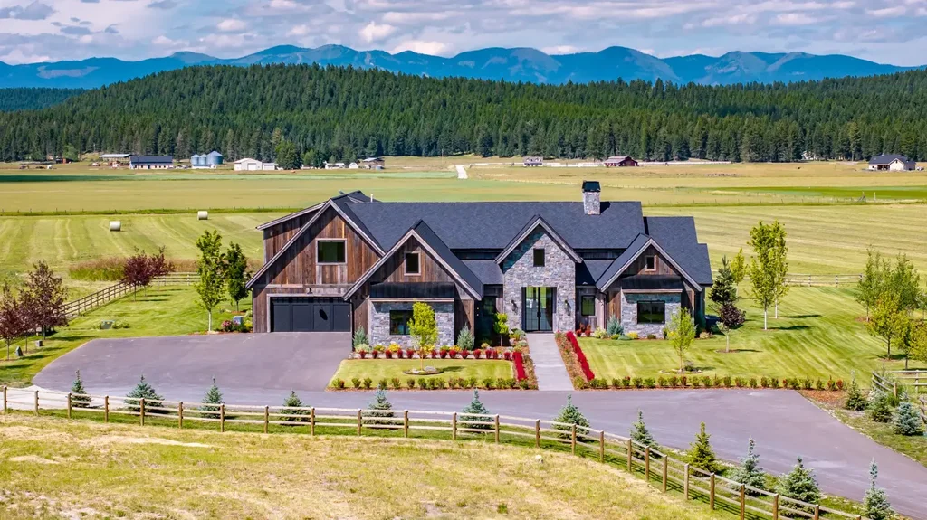 Endless Big Sky Views and Wide-Open Living! Extraordinary Montana living in this one-of-a-kind home perfectly positioned at the end of a cul-de-sac on 40 expansive acres. Just a short drive to Whitefish, this 7,891 sf, stunning residence offers uninterrupted panoramic views and the ultimate equestrian or recreational haven. Designed to capture the essence of modern Montana style, the sleek modern design meets rustic touches, and features a warm, contemporary feel, highlighted by rich natural stone and reclaimed barnwood accents. The spacious open-concept living area is both dramatic and functional, with oversized windows that flood the space with natural light and frame the breathtaking scenery. Entertain with ease in the vaulted great room, which includes a formal dining area, an oversized center island, and sliding glass doors that open onto a quiet courtyard. A separate breakfast kitchen offers additional prep space, ideal for hosting without cluttering the main living areas. The living room centers around a striking floor-to-ceiling stone fireplace, creating a cozy, inviting atmosphere for relaxing or gathering with family and friends. The primary suite is a true sanctuary complete with a luxurious spa-style bath, stone fireplace, home office, and a spacious walk-in closet with laundry. The family room is perfect for game nights or movie marathons, surrounded by generously sized bedrooms, each with its own ensuite for maximum comfort and privacy. Upstairs, is a fully equipped gym with wall-to-wall mirrors, alongside versatile bonus rooms ready to fit your lifestyle. The oversized 1,571 SF insulated five-car garage, paired with an 1,100 SF barn/shop that offers its own bedroom, two bathrooms, a cozy living room and kitchen, plus a bonus flex room, ideal for a home office, workout space, or gear room is perfectly suited for the recreational Montana life. Located just outside of Whitefish, with unmatched views, privacy, and high-end finishes throughout, this luxury ranch property stands out above the rest!