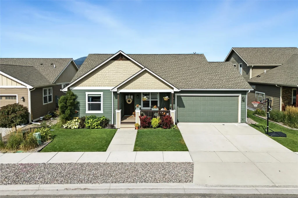 Set on one of the most desirable lots in 44 Ranch, this home offers a backyard few others can rival. Expansive, fully fenced, and beautifully landscaped, it’s one of the largest outdoor spaces in the neighborhood and includes underground sprinklers for easy care. A large patio extends your living area outdoors, and the front and side of the home feature custom multi-color LED soffit lighting so you can celebrate every season and holiday in style at the push of a button. The setting itself is equally impressive. Right out your front door is the 5.7-acre 44 Ranch Park, the signature gathering place for the neighborhood. The park includes a fountain, water features, a playground, a covered pavilion with picnic areas, and wide-open green space that brings neighbors together year-round. From your covered front porch, you’ll have a shaded, comfortable spot to relax and enjoy a front-row seat to the park’s activity. Inside, the home offers nearly 1,600 square feet of thoughtfully designed single-level living. A vaulted ceiling opens up the great room as you enter, connecting a bright living area, dining space, and a kitchen that’s both functional and inviting. Stainless steel appliances, abundant cabinet storage, extensive counter space, a breakfast bar, and a walk-in pantry make the kitchen a standout. A second den area features rustic barn-wood accents and sliding glass doors that lead directly to the backyard. Additional highlights include a custom laundry room with built-in cabinetry and workspace, a primary suite with a large walk-in closet and heated tile bathroom floors, two additional bedrooms with a second full bath, and an oversized garage with an extra-deep bay, built-in shelving, and a separate door to the backyard. A high-efficiency furnace, central air conditioning, and an included storage shed round out the package. Life in 44 Ranch means more than just a home, it’s becoming part of a community known for block parties, seasonal celebrations, and one of the best Halloween traditions in Missoula. With unmatched yard space, direct access to the park, and a beautifully finished interior, this property puts you at the heart of it all.