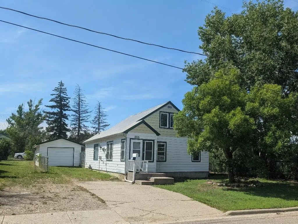 This move-in ready 3 bedroom, 1 bath home has been newly updated with interior paint and flooring. The equipped kitchen has oak cabinetry. Main floor laundry is large and could also be used as an office. You will enjoy the spacious dining room with large window. The vinyl windows were added a few years ago. The property is fully fenced with chain-link. There's a detached garage with concrete floor, electricity, and overhead door. The cozy gas fireplace in the living room adds just the right touch of modern aesthetics. The exterior is metal but does need painting. The roof is metal on the house and there are shingles on the garage. There is also a concrete driveway for extra off-street parking. Within walking distance of downtown and swimming pool. Spacious yard for family entertaining and/or pets. Check it out. It's priced to sell....