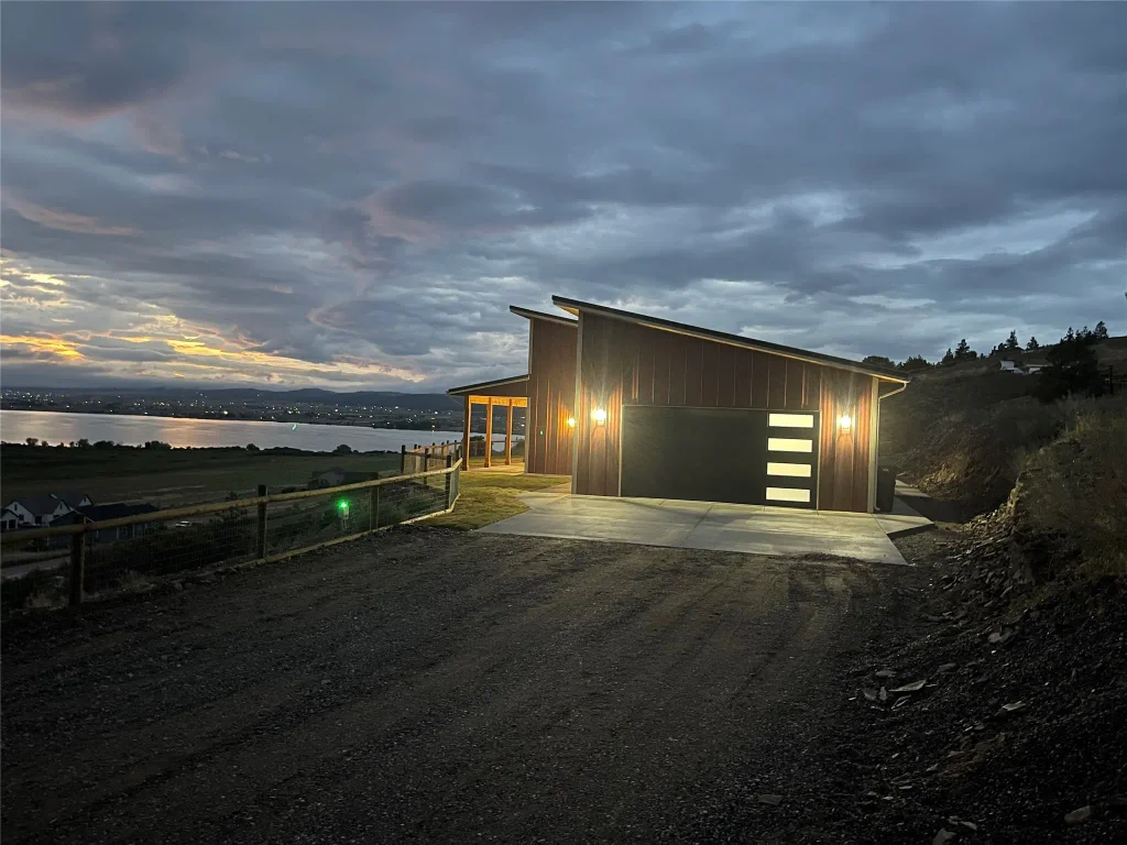 Modern design with a country feel. The covered front porch views from this gorgeous home over look Lake Helena, sunsets and mountains. Offering a single-level residence presents an attractive property, an all new splendid build, offering a unique opportunity to embrace the remarkable views. The living room serves as a grand focal point, boasting a fireplace that promises cozy evenings, while the beamed, high, and vaulted wood ceiling accentuates the expansive space, inviting natural light and creating an atmosphere of warmth and sophistication. In the kitchen, discover a culinary haven designed for both functionality and style, featuring a double oven, a large kitchen island perfect for meal preparation and casual dining, stone countertops offering durability and elegance, and shaker cabinets providing ample storage, all complemented by a wood ceiling that adds a touch of rustic charm. A few extra amenities: Siding and roof have a 40 warranty, Well is 80 GPM, plumber for sprinklers The master bathroom provides a serene retreat, complete with an elegant soaking tub, a tiled walk-in shower and double sink.
