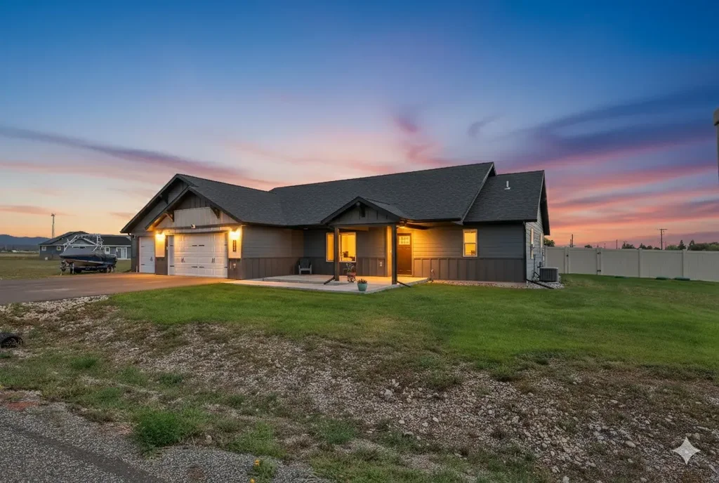 If you've ever dreamt of a life less ordinary, then 7125 Dbark Lane, is whispering your name; this single-family residence is practically brand new and ready to turn your property dreams into reality. Imagine waking in one of the three bedrooms, where sunshine streams in, ready to kickstart your day with a smile! With a whopping 1874 square feet of living area, sitting on just over 2.5 acres, there's room for all your hobbies, collections, and maybe even a trampoline – because why not? The residence, built in 2022, is practically sparkling with newness. Got cars? Got hobbies that require space? Got a serious need for storage? The three-car garage is ready to house it all, transforming from a place for vehicles into a launchpad for your weekend adventures. Want to unwind? Check out the large patio in the beautifully fenced backyard, soak your cares away in the hot tub, or just take in the views as you relax and enjoy all Montana has to offer.