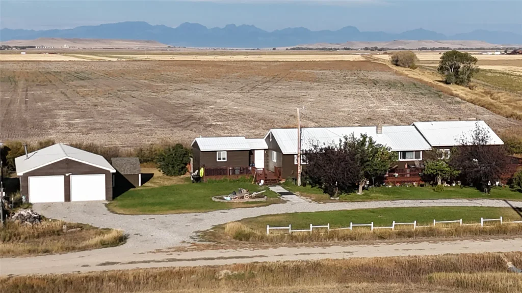Nestled at 1910 9th LANE NW, Choteau, Montana, this inviting home in Teton County stands ready to welcome you. Experience magnificent sunrises and sunsets from your wrap-around decks. The living room offers a warm and relaxing atmosphere, featuring a beamed ceiling that adds a touch of architectural character and visual interest to the space. Dining room, kitchen and living room are a semi-open floor plan. The kitchen is a culinary dream, equipped with stone countertops that provide both beauty and durability, along with a backsplash that adds a stylish touch. Kitchen appliances are new in the last 2 years. This kitchen is designed for both everyday cooking and entertaining, making it the true heart of the home. The Master Bedroom has a patio door to a deck for relaxing and enjoying views of the mountains and sunsets. The Master bathroom is designed as a private oasis, offering a walk-in shower for quick refreshment and a jetted tub for luxurious relaxation. Master bedroom is enhanced with vaulted ceilings and crown molding adding a touch of elegance and refinement to the space. This home offers a guest bedroom with its own entrance and half bath. The big wrap-around deck was recently painted. Your fur babies will enjoy the fenced back yard. The mature shelter belt adds additional privacy and comfort. Horses are welcome! This property has a 150' round pen along with horse stalls two of which are heated with doors. There is electric to this property and a second well along with a well house and tack shed. Detached garage is deep enough to hold 4 vehicles and is heated with gas. The wood shop has its own wood stove for comfort while having a moment of solitude. There are multiple out-buildings for storage. No need to worry about getting to town. This property borders county roads. The views are magnificent. See ADDITIONAL INFORMATION attached to this listing for everything that is included and pertinent.