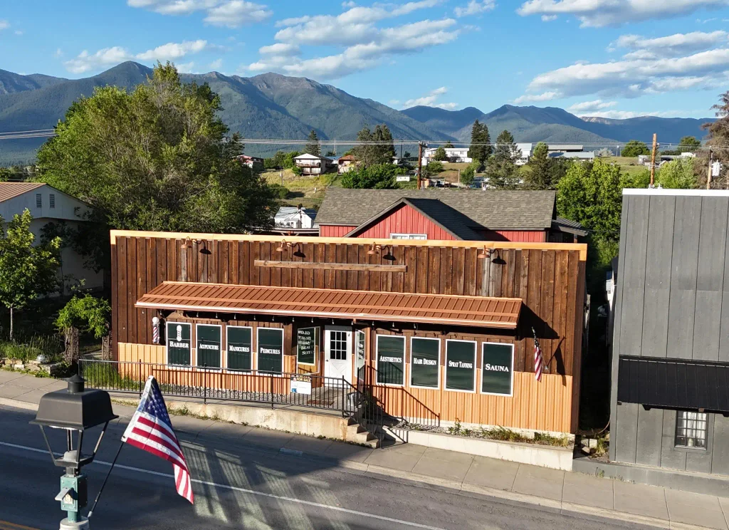 FULLY UPDATED Prime Commercial Location ~ Located downtown on Main Street. The building is designed for multiple space use: salon/nails/massage/acupuncture/professional offices + huge warehouse. A front retail space, with a welcoming reception room. Eight private rooms. The center of the building provides a second reception, a break/kitchen area, and 3 additional private rooms. 1 features a private entrance from the side courtyard, just before the large warehouse with a roll-up door to the alley. There is a stairway leading to 4 private offices. Also including a 6-person sauna + full bathroom with exterior access. bathroom) 2006, circle sawn wood floor in main, 1 bed & bath, new laminate in 2nd. bed 2023. Prime, prominently located building in the vibrant heart of Eureka, downtown, with locally owned shops, restaurants, and professional services. Original 19th-century brick buildings. This small town is known for its residents' community pride and hospitality. It is also known for its classic, rural Montana lifestyle, with a steady flow of both local and seasonal residents. Becoming a huge recreation area. IMPROVEMENTS: Full electrical rewire, partial new plumbing, new roof 2018, new HVAC for front space 2023, New laminate flooring throughout the front and middle sections 2019, new bathroom and shower room with exterior door for combo with 6-person sauna added in 2023, Added a new bathroom in the back common area. Total of 2 new bathrooms plus a shower room added in 2023, all walls and barn-style doors added in 2023, refinished front section exterior siding 2019, Resided the middle section to match the new back, adding insulation, 34x35’ backspace with offices upstairs, built in 2018. WAREHOUSE: separate HVAC system with 3 zones 2018. APARTMENT: total remodel (kitchen, bathroom) 2006, circle sawn wood floor in main, 1 bed & bath, new laminate in 2nd. bed 2023.
