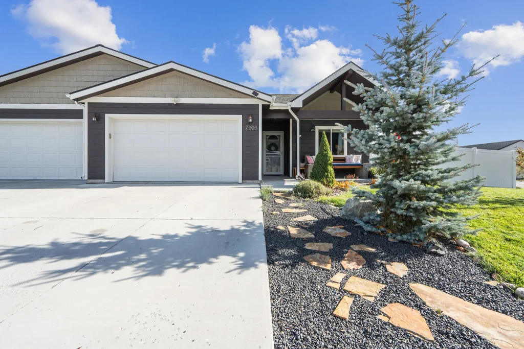 Set on a corner lot in Southside Estates near Rankin Elementary and Lone Pine State Park, this single-level townhome delivers low-maintenance living in a peaceful South Kalispell neighborhood. The open layout connects the kitchen, dining, and living areas beneath vaulted ceilings, creating an airy and welcoming space. The kitchen features generous counter space, stainless-steel appliances, and an eat-up bar ideal for casual dining. The primary suite offers a private bath with a step-in shower, while two additional bedrooms and a full guest bath provide flexibility for guests or a home office. Enjoy a landscaped yard with underground sprinklers, a covered porch, and a back patio perfect for relaxing or entertaining. An attached oversized single garage and paved driveway add convenience, while a heat pump ensures year-round comfort—all just minutes from shopping, downtown Kalispell, and the Highway 93 Bypass.