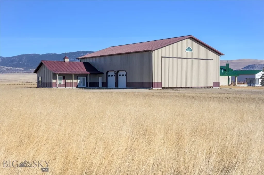 This top-notch quality Morton steel building built in 2023 was designed to accommodate both an airplane hangar and attached living quarters. Thirty feet high and boasting over 5,000 square feet, this structure is located on a 1.08-acre lot in the Jefco SkyPark subdivision in Whitehall, Montana and is adjacent to the turf runway of Airport MT-41. Land your plane and use the remote control to lift the 17 x 42-ft. Powerlift one-piece insulated hydraulic hangar door and taxi right inside. In addition, there are two 10'x10' commercial-grade garage doors. The building sits upon a 5' deep x 1' concrete foundation wall with -4" grading, has a new septic system installed (Jan 2024), and electricity (Vigilante Electric) into the property. The interior space is unfinished and ready for build-out: it is framed, insulated, and has Pella windows with blinds for what could become a customizable 1800 square foot two story dwelling. Conveniently located close to I-90, this property offers a unique opportunity for an aviation enthusiast or someone looking for a large shop.
