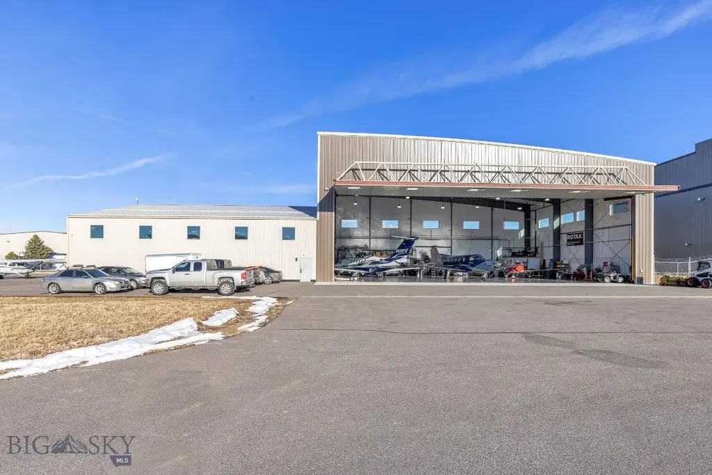 Situated at the heart of Montana's most dynamic airport, this stunning 14,000 SQFT commercial hangar at Bozeman Yellowstone International Airport is a rare gem. Offering an expansive 11,900 SQFT of hangar space complemented by 2,100 SQFT of premium office accommodations. The hangar features two impressive doors—90' x 28' and 66' x 16' 6”—with an open, internally connected layout, ideal for a variety of aviation uses and 3 phase power carts. The office space includes a welcoming reception area, two well-appointed bathrooms, and four executive offices with expansive windows, plus two additional offices without windows. The versatile open space can easily accommodate more workstations, cubicles, or even a classroom setup, providing the flexibility to meet the unique needs of your business. Currently operated as a flight school, charter service, and aircraft maintenance/management facility, this is the only hangar for sale in Bozeman that meets commercial standards, including public access to the front entrance. Situated on leased land, the buyer will assume the terms of the existing lease or negotiate a long-term, 20-year lease directly with the Bozeman Airport Authority, to be executed at closing. This exceptional property represents a rare opportunity to own a state-of-the-art aviation facility in one of the most sought-after regions in Montana.