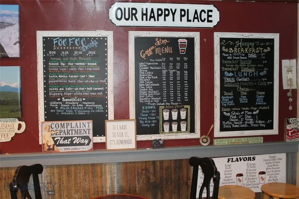 Offering the business and equipment only, no real estate. This is an exciting opportunity for entrepreneurs and coffee enthusiasts alike. Discover a rare chance to acquire a well-established and profitable cafe located in a prime, high-traffic area of Sweet Grass County, MT. This thriving business enjoys steady customer flow from the surrounding community and nearby businesses, ensuring a dependable and diverse customer base. The centerpiece of this business features a convenient drive through window accessible from the street navigating seamlessly around the building and back on to the highway. Ample parking space further enhances accessibility for customers. Diverse & Appealing Menu: Offering premium coffee, espresso, specialty teas, smoothies, fresh pastries, Ice-cream, and light breakfast and lunch options, plus seating for up to 25, this café caters to a broad audience while leaving room for menu expansion or customization. Strategically positioned alongside complementary businesses, this location maximizes visibility and foot traffic, making it an exceptional investment opportunity. The cafe comes fully equipped, with trained and dedicated staff in place to support a smooth transition and continued success. The current owners have refined a proven business model, complete with time-tested recipes and strategies, and are committed to assisting the new owner with a seamless handover. With Big Timber experiencing ongoing growth and development, this business is well-positioned to benefit from the increasing population and local demand. This coffee Stop is a perfect investment for a hands-on owner-operator or an existing operator looking to expand into Big Timbe’s thriving café market. With strong financial growth, a prime location, and an established customer base, this turn-key opportunity offers immediate profitability with room for future expansion.